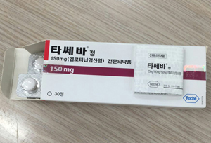문제는 정당 가격이 3만원 대에 이르는 고가 의약품 '타쎄바'가 오는 10월31일, 2017년 10월31일 두번 가격이 인하됨에도 불구하고 제약사가 도매에 차액정산 정책에 대한 입장을 통보하지 못하고 있다는 점이다
