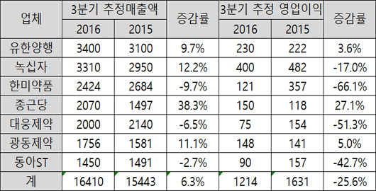 - 유한 등 7곳 매출 6%대 성장, 영업이익 20% 이상 감소
