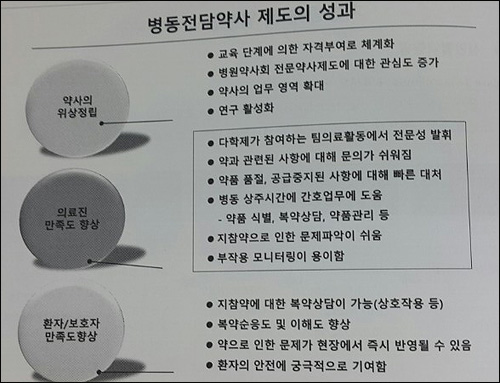 무엇보다 이번 제도의 성과로는 크게 약사의 위상정립과 의료진의 만족도 향상, 환자와 보호자의 만족도 향상이 꼽혔다.