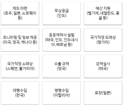 헝가리는 국가직영 도매상을 운영하고 있고, 영국은 관련 의약품 수출을 규제하고, 태국은 강제 실시를 통해 수급차질에 대응한다. 이탈리아는 병행수입, 스웨덴·불가리아는 국가직영 소매상 운영으로 유통 부문까지 관리한다. 이에 반해 우리나라는 대행수입 수준에 그치고 있다.