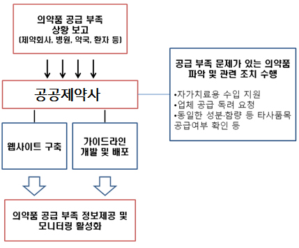외국에서도 의약품 공급 부족사태에 직면서면 공공의 영역에서 대응을 하고 있는데, 호주와 일본, 노르웨이 등은 관련 제도를 마련해 운영하고 있고, 인도는 무상공급사업을, 벨기에와 네덜란드·몽골 등은 국가에서 예산을 지원한다.