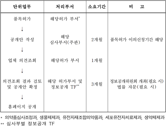 올해 7월 이후 허가신약에 적용되며, 경영·영업상 기밀자료 등 기업 비밀이나 개인정보 등은 공개 대상에서 제외된다.
