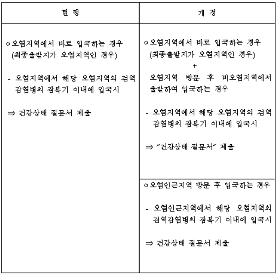 지금까지는 오염지역에서 바로 입국하는 경우(최종 출발지가 오염지역일 때)에만 건강상태 질문서 징구 의무가 부여됐다.