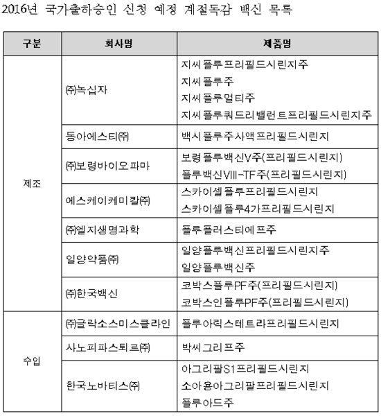 이번 허가는 앞서 식약처가 가을 이후 독감백신 투여 성수기에 대응키 위해 10개 국내외 제약사들의 백신 품목 '국가출하승인 종합계획'을 공표한 게 영향을 미쳤다.
