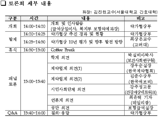 토론에는 한국보건사회연구원 박실비아 연구위원, 한국제약협회 장우순 실장, 한국애브비 김준수 상무, 건강세상네트워크 강주성 고문, 데일리팜 최은택 의약행정팀장, 공단 조용기 보험급여실장이 참여한다.