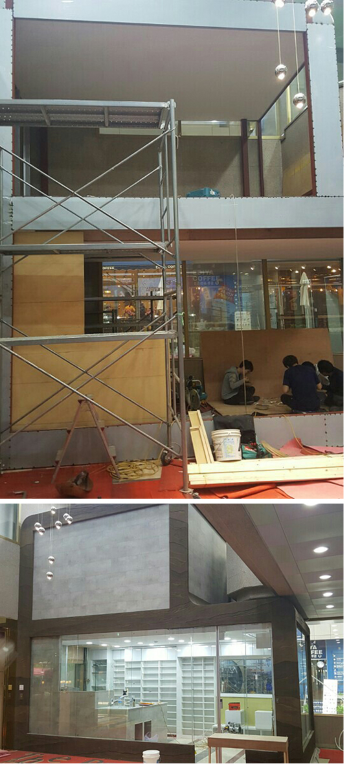 건물 1층 천장이 다른 데 보다 높은데 활용 방법을 고민하던 중 외벽을 만들어 한층을 높이자 생각했다.