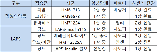 특히 베링거에 기술수출한 HM61713은 글로벌 2상이 진행중이지만 국내에서는 2상을 마치고 패스트트랙으로 지난 5월 허가를 받고 '올리타정'으로 6월부터 출시됐다.