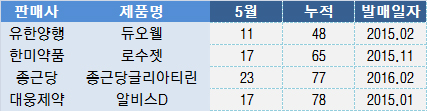 20일 의약품 시장조사 자료 유비스트에 따르면 이들 품목들은 지난 5월 한달간 처방액이 크게 올라 태풍의 눈으로 떠올랐다.