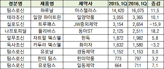 그러나 한미약품, JW중외신약 등 이 시장 강자들이 신제품을 내놓은 터라 경쟁구도에 변화가 생길지 주목된다.