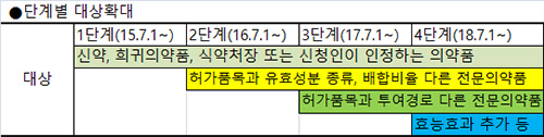 - 2018년 4단계까지 전 허가의약품 확대 목표