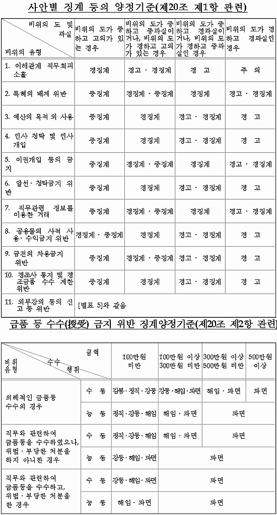아울러 경조금품 수수제한 대상이 확대되고, 금품 등 수수 금지 위반 징계기준 강화와 함께 청렴교육 연 5시간 이상 이수가 의무화된다.