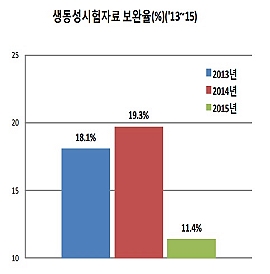 특히 지난해 생동시험자료 보완율은 11.4%로, 2013년 18.1%, 2014년 19.3% 대비 크게 낮아진 부분이 눈에 띈다.