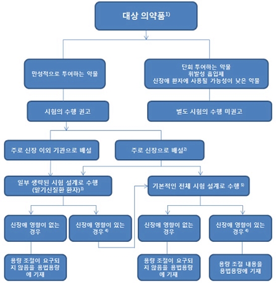 주요 변경사항은 ▲신장애 임상 수행대상 ▲신기능 분류기준 임상 연구 설계도 ▲약물투여 기준 ▲집단약동학 등이다.