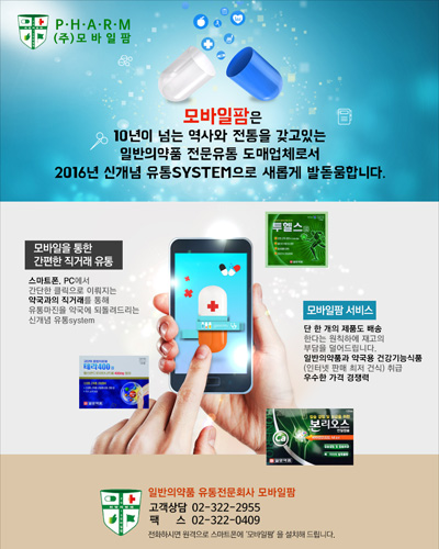 모바일팜은 일반약과 건강기능식품 700여 개 품목을 갖춘 온라인몰로, 자체 홈페이지와 시스템을 개발해 이름 그대로 '모바일'로 주문과 확인, 결제가 모두 가능하다.