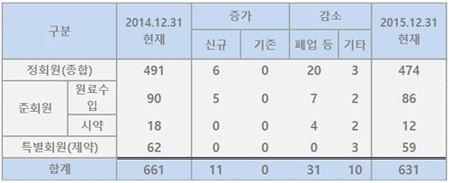 회원사 661곳 중 1년간 신규 가입이 11곳이었던 반면 폐업 회원사 수는 31곳, 기타 이유로 탈퇴한 수가 10곳으로 총 41곳의 회원사가 줄어든 셈이다.