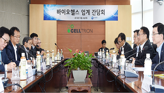 유일호 경제부총리는 4일 바이오 의약품 제조기업인 셀트리온를 찾아 기업현장을 시찰하고 바이오헬스 분야의 기업인 및 유관기관 관계자들과 바이오헬스 산업 활성화 간담회를 통해 애로 및 건의사항을 청취하고 개선방안을 논의했다.