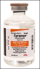 한편 사이람자는 미국 FDA로부터 2014년 4월과 11월에 각각 단독법 및 파클리탁셀 병용법 승인을 받았다. 유럽 EMA에서도 같은해 12월 허가됐다.