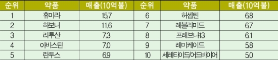 지난해 M&A에 성공한 화이자·앨러간이 올해 글로벌 제약시장 매출 1위에 오를 것이라는 전망이 나왔다. 의약품 중에서는 류마티스관절염치료제 휴미라가 첫 손에 꼽혔다.