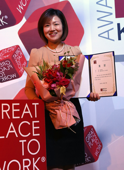 김 차장은 지난 10월 GWP코리아가 주관하는 '자랑스런 워킹맘 100인'에 선정되는 기쁨을 안았다. GWP코리아는 2002년부터 '대한민국 일하기 좋은 100대 기업'을 선정해 시상하는 미국 GPTW연구소의 한국지사다.