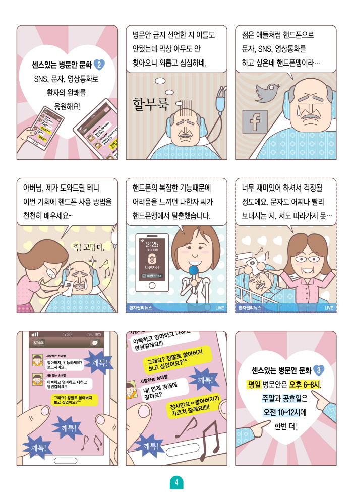 정부와 환자·소비자·공급자단체가 함께 병문안 개선을 위한 인터넷 웹툰을 제작·배포했다.