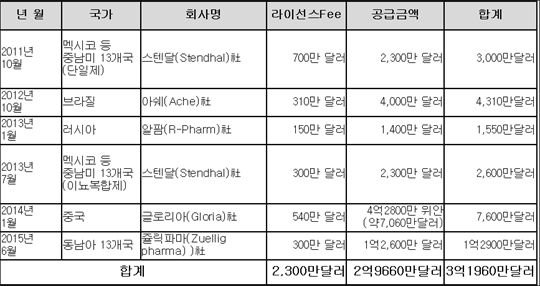 또 2013년 계약한 러시아에서도 임상 3상을 성공적으로 마무리하고 현재 결과보고서와 발매 허가 신청을 준비하고 있으며, 내년 초 발매허가를 받을 것으로 전망되고 있다.