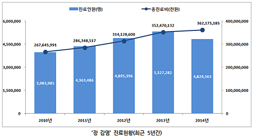 장염 총진료비 한해 3622억원…환자 4.9%씩 늘어