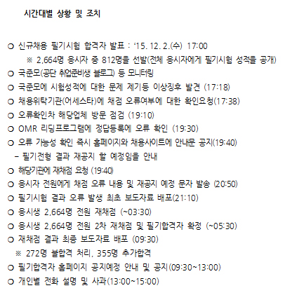 공단은 "문제점을 인지한 당일, 업체를 방문해 오류내용을 확인하고 전체 재채점을 요청하고 응시자 전원에게 채점 오류 결과 재공지 내용을 SMS 문자와 메일 발송을 요청, 처리한 뒤 보도자료를 배포했다"고 당시 상황을 설명했다.