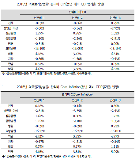 5월 당시 공단과 의약단체는 내년도 수가 인상률을 조산원 3.2%, 약국 3%, 의원 2.9%, 보건기관 2.5%, 한방 2.2%, 치과 1.9%, 병원 1.4%에 각각 계약했다. 치과와 병원은 협상 결렬로 인해 건강보험정책심의위원회에서 의결 형식으로 정해졌었다.