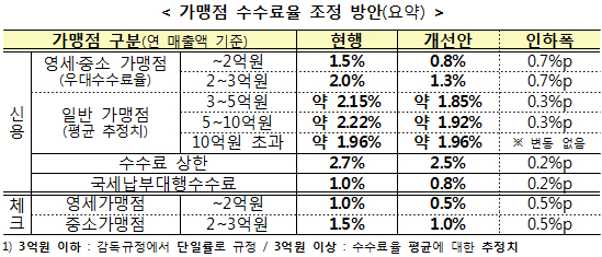 조 회장은 "대형가맹점과의 차별을 시정하고 중소가맹점의 부담을 완화하기 위해서는 매출액 규모에 상관없이 카드수수료를 1.5% 수준으로 인하돼야 한다"고 촉구했다.