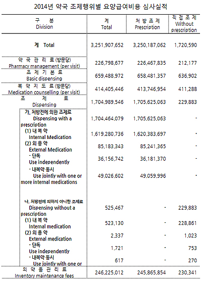 건보공단과 심사평가원이 공동발간한 '2014년도 건강보험통계연보'에는 약국 요양급여비용 심사실적과 조제행위별 급여비 심사실적 경향이 이 같이 반영됐다.