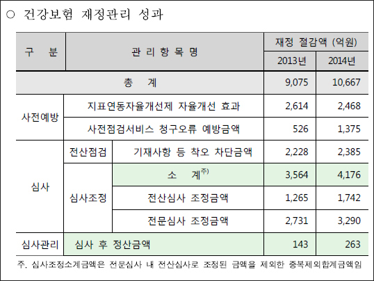 또 기재사항 등 착오 차단금액(전산점검) 2385억원, 전산·전문심사 등 심사조정금액 4176억원 등 심사효율화로 6561억원의 재정누수를 막았다.