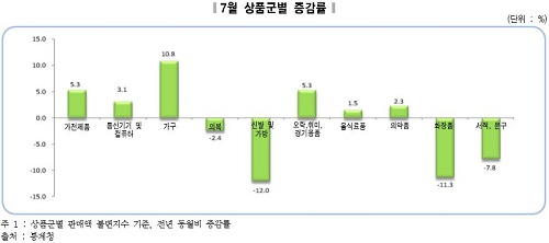 그러다 7월에 접어들면서 순수소매판매액은 22조5009억으로 전월대비 4.4% 증가한 수치를 보였다. 전년 동월대비 1.9% 증가한 규모다.