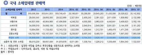 한편 택배배송을 이용하는 무점포 소매는 지난 6월이 2014년 6월보다 15% 늘어나며 크게 성장했다.