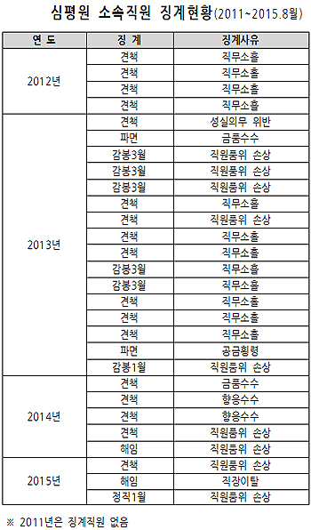 금품·향응 수수와 폭행, 직장이탈까지 사유도 제각각인데, 이 기간동안 총 9명이 파면, 17명이 해임 처분 받았다.