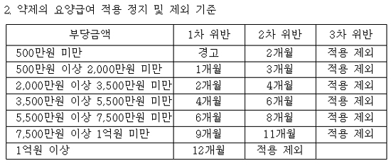 투아웃제 시행 후 첫 번째 사례이기 때문에 급여정지 처분 대상이 되려면 확인된 부당금액이 500만원이 넘어야 한다.