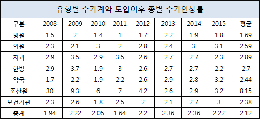 의약단체들의 불만은 여기서 시작된다. 건강보험 재정이 파탄났을 때는 수가를 인하했고, 재정이 안정화될 때까지 동결이나 저상장을 감내했다.