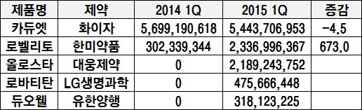 로벨리토(한미약품)와 올로스타(대웅제약)는 잘하면 100억 블록버스터 등극 가능성도 엿보인다.