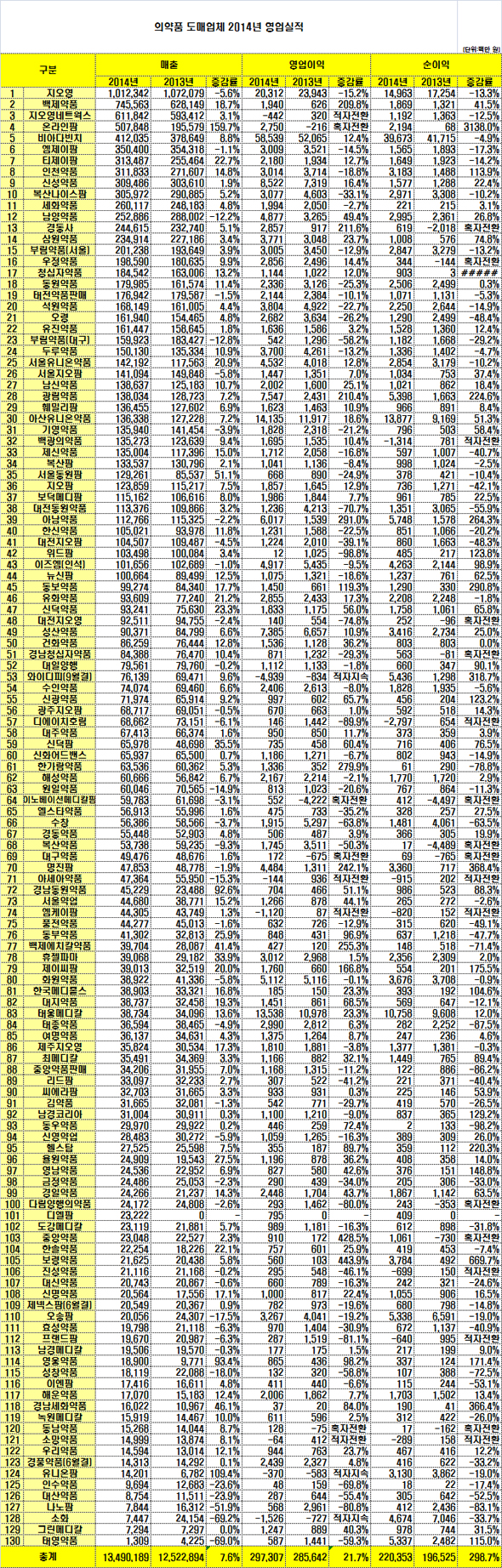 이 밖에 매출이 감소한 업체는 엠제이팜, 남양약품, 태전약품, 부림약국(대구), 서울지오팜, 기영약품, 아남약품, 대전지오영, 원일약품, 복산약품, 아세아약품 등이었다.