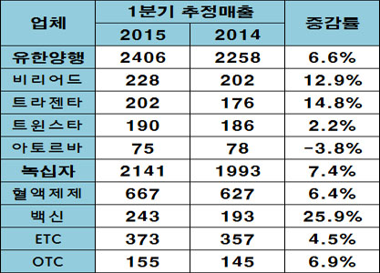 유한 2400억·녹십자 2140억…산뜻한 1분기 출발