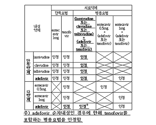 현재는 복용 중인 B형 간염약을 다른 약으로 교체해 투여할 경우, 내성 발생, 치료반응 불충분, 심한 부작용 등 부득이한 경우가 아니면 새로 교체한 약은 건강보험이 적용되지 않았다.