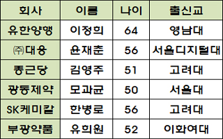 리딩기업 유한양행은 이정희 부사장이 새롭게 3년 임기의 대표이사 사장에 확정됐으며, 대웅제약 지주회사 (주)대웅은 윤재춘 부사장을 신임 대표로 선임했다.