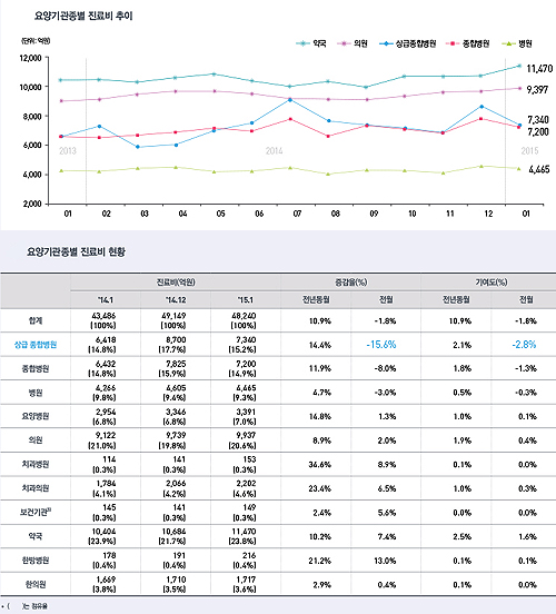 총진료비는 12월보다 909억원(1.8%) 감소한 반면, 지난해 1월보다는 4754억원(10.9%) 늘었다.