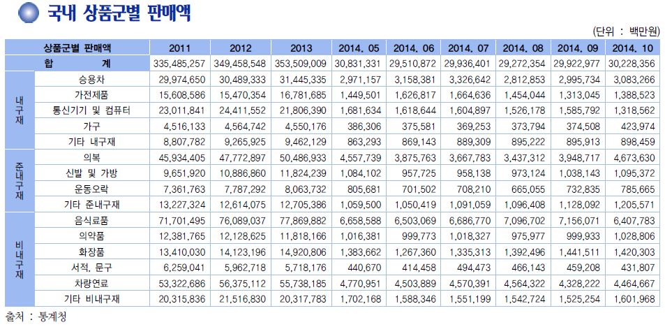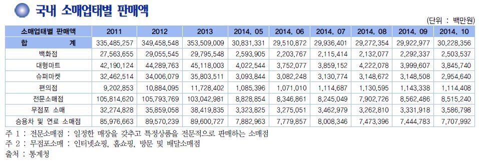 아울러 온라인상거래가 포함된 무점포소매 시장 역시 크게 성장해 편의점과 같은 양상을 보이고 있다.