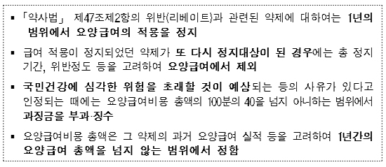 리베이트 적발 약제 급여정지 시 '포괄일죄 적용'