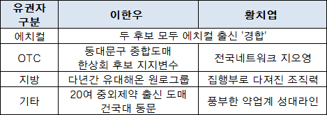 더구나 이한우(원일약품)-황치엽(대신약품) 후보 모두 에치칼 업체 출신이다. 표가 둘로 나뉠 가능성은 적다.