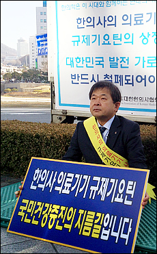 김 회장은 "이러한 상황에서 한의협이 취할 수 있는 행동은 단식 뿐 이었다"며 "현대의료기기 사용 문제가 이익집단의 행동으로 보이지 않도록 노력했지만, 그러한 노력이 결국 물거품이었다는 판단에 이르렀다"고 단식의 배경을 설명했다.