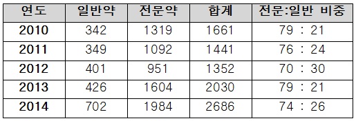 - 2014년 2686건 신규허가…일반약 65% 증가