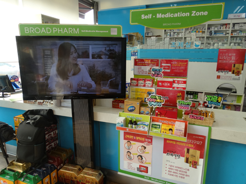 적용 방식은 간단하다. 회사 차원에서 회원 약국 골든존에 셀프 매대와 관련 제품을 광고할 수 있는 DID모니터를 설치하는 방식이다.