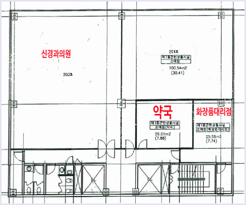결국 약사는 전용통로에 걸려 번번이 약국입점 시도가 무산되자 화장품대리점을 끼고 들어와 약국 개설을 보건소에 요청했다.
