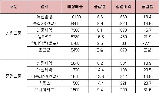 중상위 그룹 올 예상 성적표는? 중견제약 약진 주목